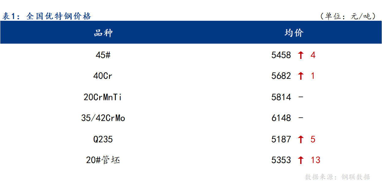4月8日全國市場優(yōu)特鋼價格小幅上漲,45#碳結(jié)圓鋼Ф29-85全國均價報 5500元/噸,主導(dǎo)市場杭州庫提5500元/噸,無錫庫提5490元/噸,山東優(yōu)特鋼直發(fā)5420元/噸。