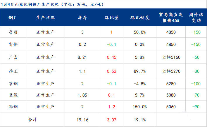 山東優(yōu)特鋼廠庫(kù)存19.16萬(wàn)噸,增加3萬(wàn)噸