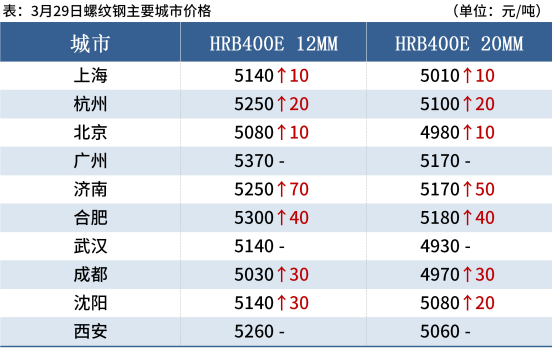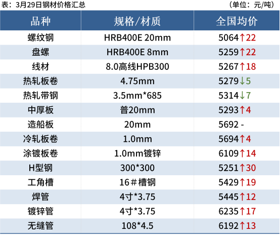 建筑鋼材:3月29日,全國(guó)31個(gè)主要城市20mm三級(jí)抗震螺紋鋼均價(jià)5064元/噸,較上個(gè)交易日上漲22元/噸。具體來看,上午期螺高位趨弱,國(guó)內(nèi)建筑鋼材價(jià)格多數(shù)延續(xù)漲勢(shì),部分持穩(wěn)。上午螺紋鋼投機(jī)和終端需求表現(xiàn)一般,漲后成交亦不佳,螺紋鋼高位出貨并不順暢。短期來看,螺紋鋼雖然近期部分地區(qū)疫情防控逐漸緩解,但當(dāng)前市場(chǎng)仍處于強(qiáng)預(yù)期、弱現(xiàn)實(shí)的狀態(tài),疫情壓制的需求將隨著防疫政策的調(diào)整而出現(xiàn)小幅爆發(fā)的可能。同時(shí)臨近清明小長(zhǎng)假,不排除節(jié)前螺紋鋼備貨的可能,但也需要防范雨水天氣對(duì)于終端需求的影響。