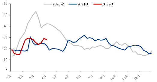 表二:2020-2022年山東優(yōu)特鋼廠庫(kù)存(單位:萬(wàn)噸)