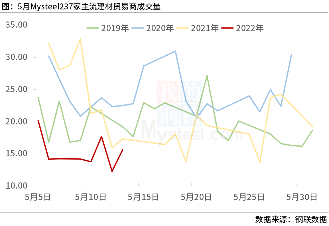 再看鋼鐵行業(yè),據(jù)上海鋼聯(lián)調(diào)研,5月5日-13日,237家主流建材貿(mào)易商日均成交量為15.27萬(wàn)噸,較去年同期下降近4成;上周鋼材五大品種表需較去年同期下降近17%;506家混凝土企業(yè)產(chǎn)能利用率同比降超10個(gè)百分點(diǎn)。