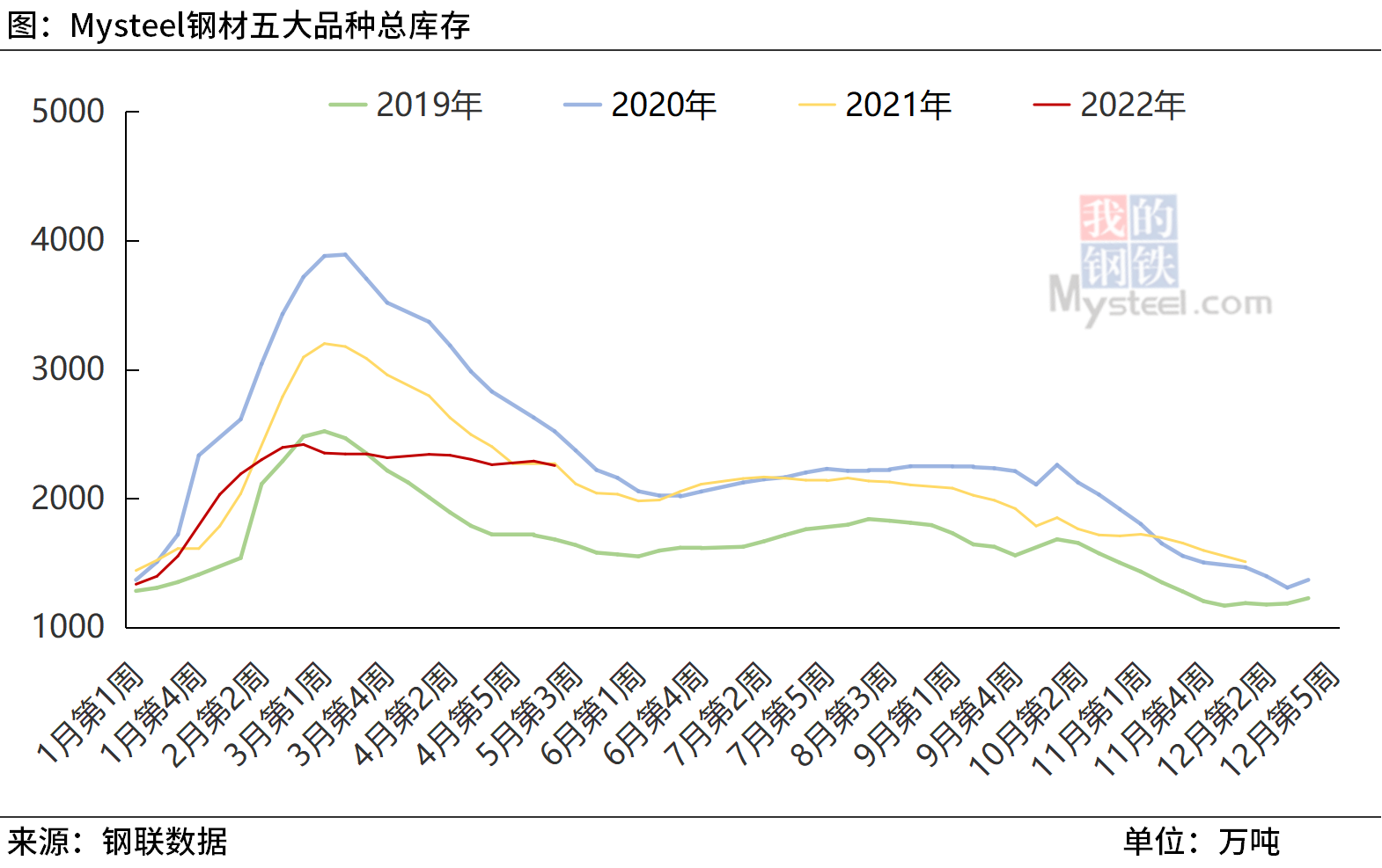 這種狀況即便在受到疫情沖擊的2020年也未曾出現(xiàn)過(guò),市場(chǎng)對(duì)此憂(yōu)慮重重,去庫(kù)姍姍來(lái)遲確實(shí)增大了市場(chǎng)風(fēng)險(xiǎn),甚至有人擔(dān)心形成“堰塞湖”。但另一方面看,雖然去庫(kù)存緩慢,但絕對(duì)水平并不算太高。首先,年內(nèi)庫(kù)存的高點(diǎn)創(chuàng)下2018年以來(lái)新低,其次,目前的庫(kù)存水平與去年同期基本持平。從庫(kù)存結(jié)構(gòu)看,五大品種鋼材社會(huì)庫(kù)存尚在可承受范圍,鋼廠庫(kù)存相對(duì)壓力更大一些,上周數(shù)據(jù)為700.59萬(wàn)噸,同比增22%。