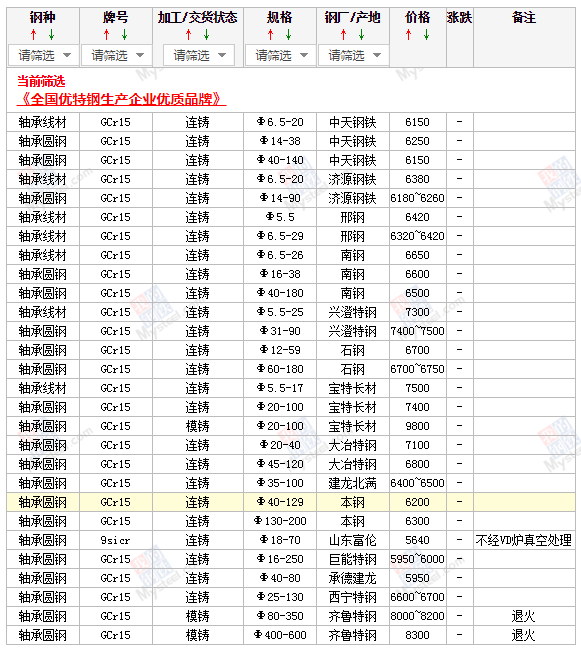 5月18日軸承鋼鋼廠出廠價(jià)格行情