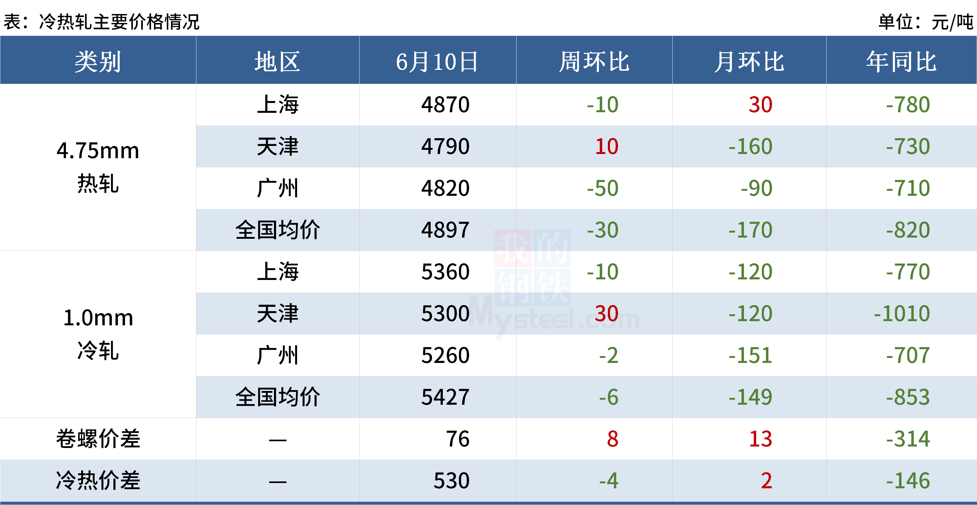 二、鋼材各品種情況