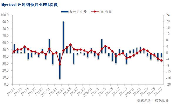 7月全國(guó)鋼鐵行業(yè)PMI小幅回落 終值34.5%