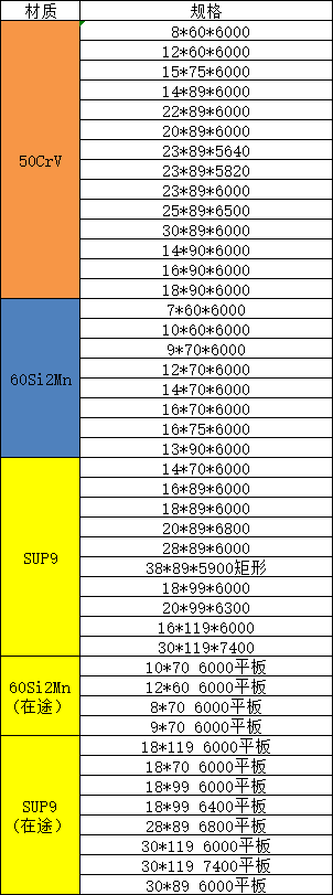 我公司代理八鋼彈簧扁鋼:60Si2Mn、50CrV、SUP等鋼種,今日部分規(guī)格如圖