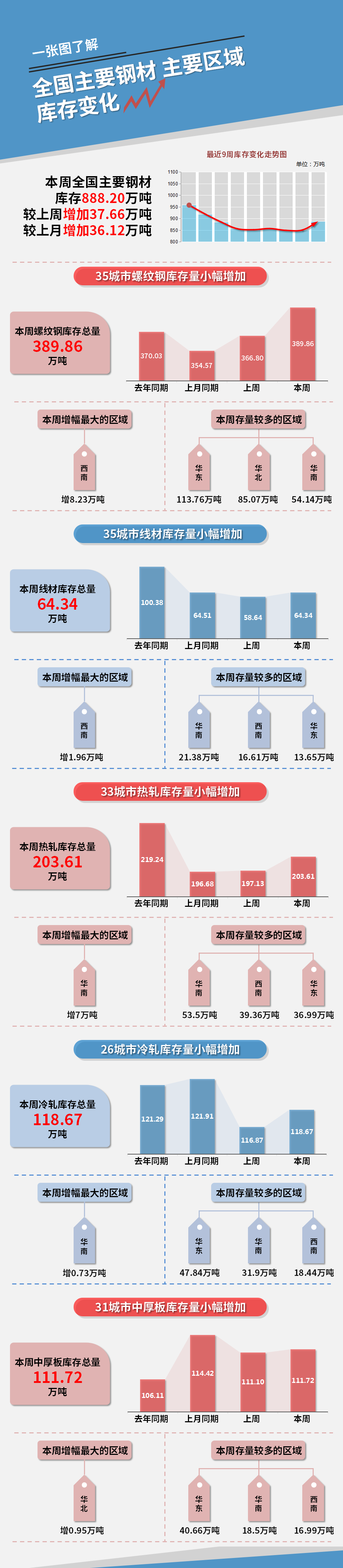 本周五大品種總庫存1325.44萬噸,較上一期增加42.89萬噸。供應方面,本周除熱軋和冷軋,其余鋼材品種產量環(huán)比均出現(xiàn)下行,主因在于建材長短流程企業(yè)均進入季節(jié)性停休或降低生產飽和度的狀態(tài)。需求方面,本周五大鋼材(軸承鋼)品種周消費量環(huán)比延續(xù)下行,終端需求表現(xiàn)仍維持淡季特征。庫存方面,本期各端庫存環(huán)比延續(xù)上行,主因在于當前終端冬儲推進偏慢、下游散單采購情緒偏低、投機需求減弱等因素影響,預計后期庫存累增幅度將進一步擴張。