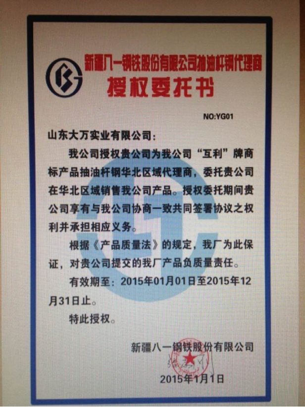 下一篇: 2020年新疆八一鋼鐵有限公司授權(quán)書 上一篇: 2015年西寧特殊鋼股份有限公司授權(quán)書
