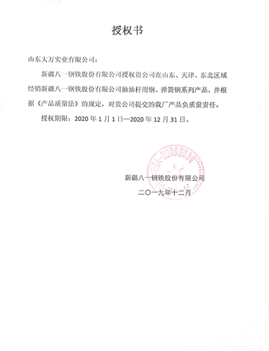2020年新疆八一鋼鐵有限公司授權(quán)書